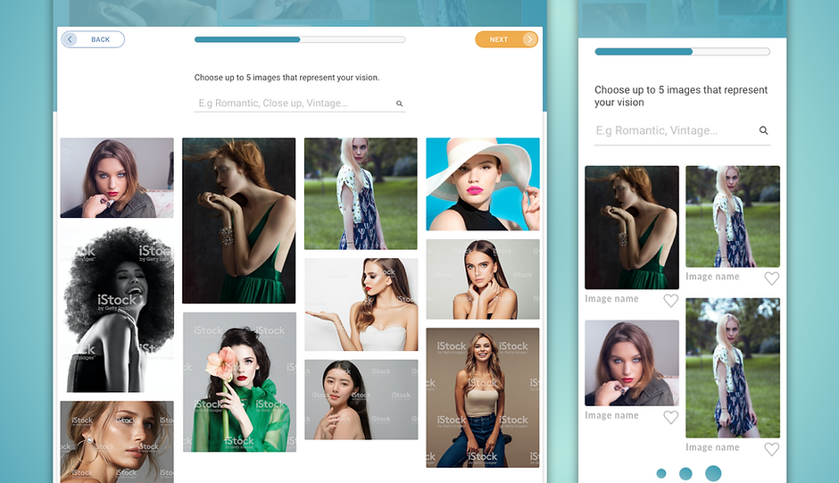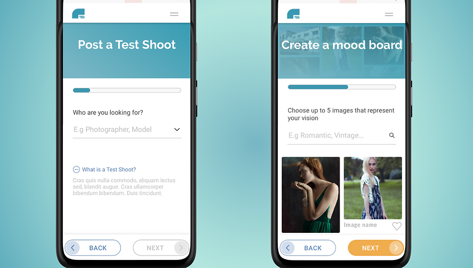 I then designed a new feature, to help increase engagement with project posted: the mood board. Users would be able to add images to their projects to visually communicate their inspiration, ideas and requirements for a specific post. Above you can see the iterations from wireframes, the old designs to the final once. These were tested with users for validation.